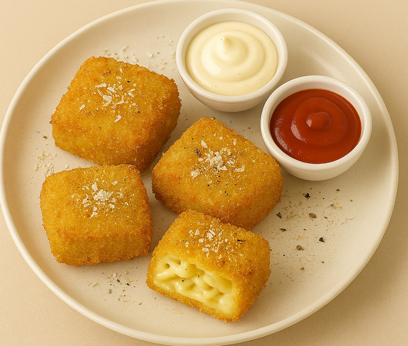 Cuocere gli spaghetti leggermente al dente in acqua salata, scolare e passare sotto acqua fredda per fermare la cottura. Tagliare grossolanamente e versare in una ciotola. Unire il Grattugiato Gourmet Cacio e Pepe e la besciamella, mescolare il tutto. Stendere in una teglia con carta forno e lasciare riposare coperta in frigo per 30 minuti. Intanto mescolare farina e acqua per realizzare una pastella, tagliare il composto di spaghetti a quadrotti, passare nella pastella poi nel pan grattato e cuocere in olio per qualche minuto per lato. Scolare su carta forno per togliere l’olio in eccesso. Servire con salse a piacere.