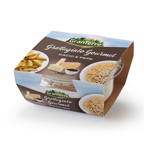 Il Grattugiato Gourmet Cacio e Pepe è un nuovo e sfizioso condimento a base di eccellenze italiane di formaggi, estremamente versatile nell’utilizzo e per diversi livelli di abilità in cucina.